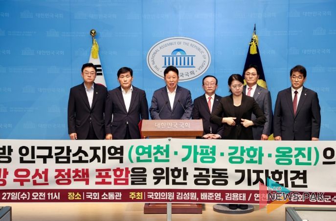 뉴스팍 배상미 기자 | 수도권에 속하지만 인구감소지역으로 지정된 가평군, 연천군, 강화군, 옹진군이 정부의 지방 우선 정책에서 소외되고 있다며 개선을 강력히 요구했다. 이들 4개 지역 군수들은 27일 국회 소통관에서 공동 기자회견을 열고 “경인지방 인구감소지역을 지방 우선 정책에 반드시 포함시켜 달라”고 촉구했다.
