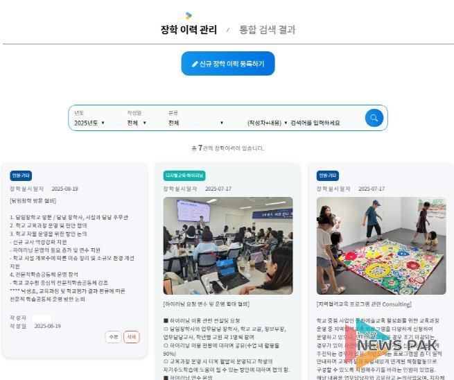이번 플랫폼의 가장 큰 특징은 학교 교육활동의 장학 이력을 누적해 관리하고, 학교와 교육지원청의 정기적 성찰 협의 체제를 구축해 학교 교육력을 높이도록 하는 것에 있다. 이를 통해 함께 학교 교육을 읽고, 실행하고, 되돌아보는 순환 구조를 갖추도록 노력할 계획이다.