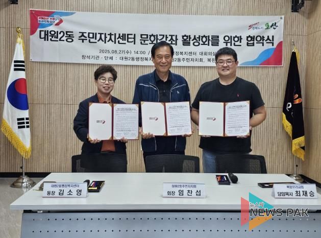 뉴스팍 이소율 기자 | 오산시 대원2동 주민자치회는 지난 27일 대원2동 행정복지센터 대회의실에서 복된우리교회와 문화강좌 운영을 위한 업무협약(MOU)을 체결했다.