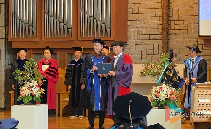 뉴스팍 배상미 기자 | 군포시의회 박상현 의원(국민의힘, 재궁동·오금동·수리동)이 8월 29일 신촌 연세대학교 루스채플 WORSHIP HALL에서 국제통상경영전공 석사 학위를 취득했다.