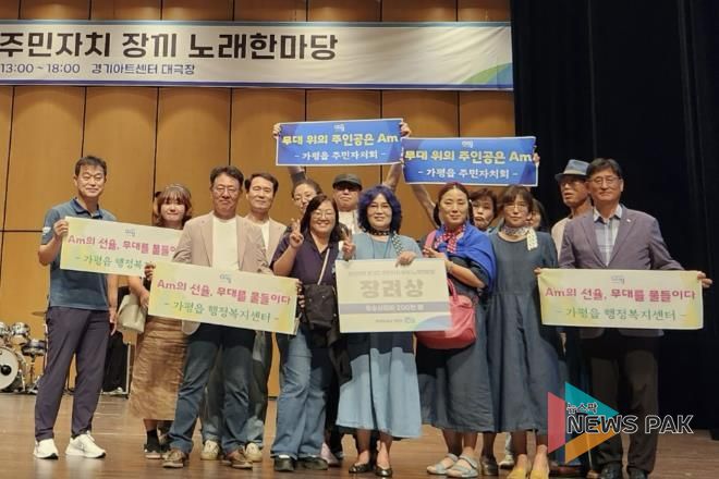 뉴스팍 배상미 기자 | 가평군 가평읍 주민자치센터 문화동아리 ‘Am(에이마이너)’가 경기도 주민자치 문화경연대회에서 장려상을 차지했다. 가평읍 동아리는 3일 수원시 경기아트센터 대극장에서 열린 ‘2025 경기도 주민자치 문화경연대회’에 가평군 대표로 참가해 열정적인 무대를 선보였다.