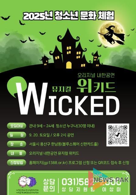 뉴스팍 배상미 기자 | 가평군청소년상담복지센터가 이달 20일 관내 청소년들을 대상으로 특별 문화체험 프로그램인 ‘뮤지컬 관람 프로젝트’를 진행한다.