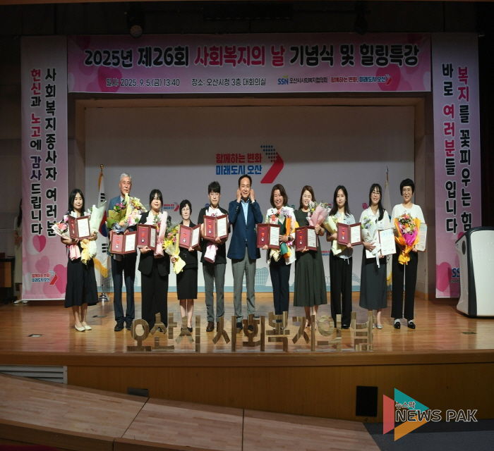 뉴스팍 이소율 기자 | 오산시는 지난 9월 5일(금) 오후 1시 40분, 오산시청 3층 대회의실에서 열린 '제26회 사회복지의 날 기념식 및 힐링 특강'을 성황리에 마쳤다고 밝혔다.