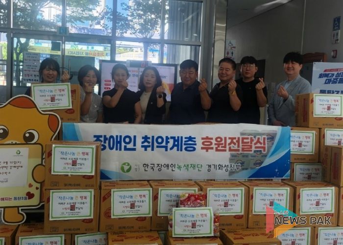 뉴스팍 류은정 기자 | 화성특례시은 한국장애인녹색재단은 추석 명절을 맞이하여 동탄3동의 도움이 필요한 주민들을 위해 100만원 상당(라면 40박스)를 기탁하는 전달식 실시했다고 전했다.