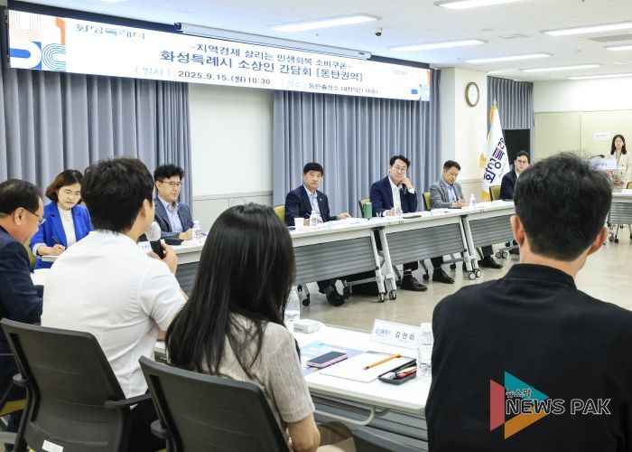 뉴스팍 류은정 기자 | 화성특례시는 15일 동탄출장소에서 동탄권역 소상인 20여 명을 초청해 ‘민생회복 소비쿠폰 소상인 간담회’를 개최하고 현장의 목소리를 청취했다.