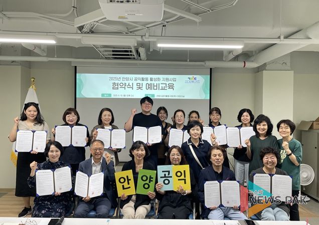 뉴스팍 배상미 기자 | 안양시공익활동지원센터는 지난 15일 오후 2시 센터 대회의실에서 ‘2025년 안양시 공익활동 활성화 지원사업’에 선정된 12개 공익단체와 협약식을 체결하고 예비교육을 진행했다고 16일 밝혔다.