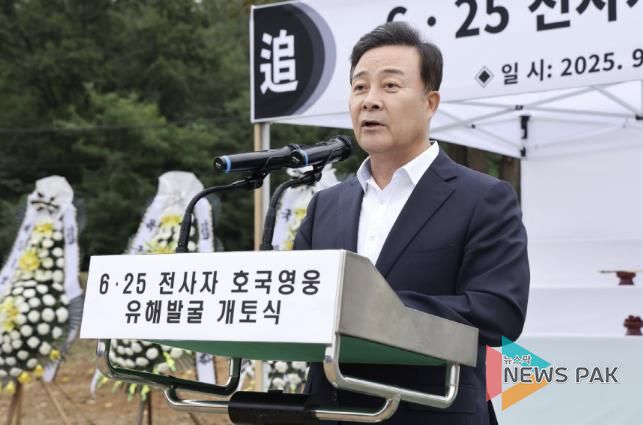 뉴스팍 배상미 기자 | 김성제 의왕시장이 9월 16일 모락산 유격장에서 개최된 ‘6.25 전사자 유해발굴 개토식’에 참석했다.