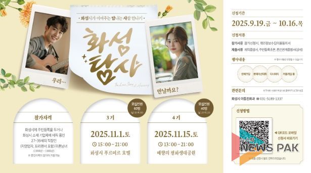 뉴스팍 류은정 기자 | 화성특례시가 19일부터 다음 달 16일까지 직장인 미혼남녀 만남 행사 ‘화성탐사(화성시가 이어주는 탐나는 사람 만나기)’ 3·4기 참가자를 모집한다.
