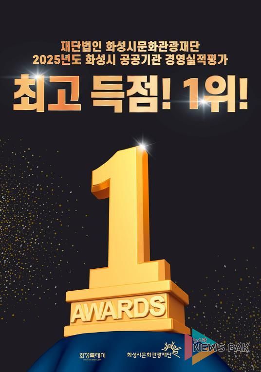 뉴스팍 류은정 기자 | 재단법인 화성시문화관광재단이 화성시가 주관한 2025년도(2024년 실적) 공공기관 경영실적평가에서 기관평가 종합 1위를 차지했다.