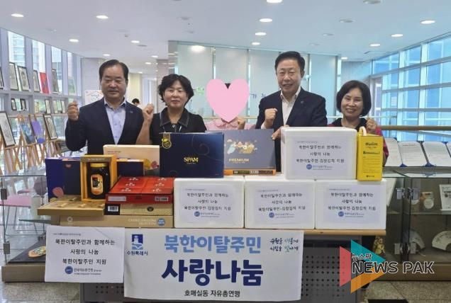 뉴스팍 류은정 기자 | 수원시 권선구 호매실동 한국자유총연맹은 지난 22일, 추석을 앞두고 관내 북한이탈주민에게 명절 선물을 전달했다.