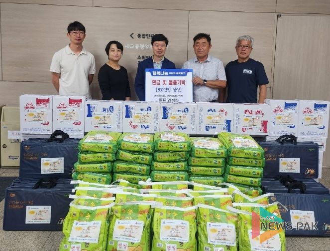 뉴스팍 이소율 기자 | 평택시 세교동 행정복지센터는 23일, ㈜세종스톤에서 민족 대명절 추석을 맞아 총 500만 원 상당의 현물과 성금을 기부하며 지역사회에 따뜻한 나눔을 실천했다고 전했다.