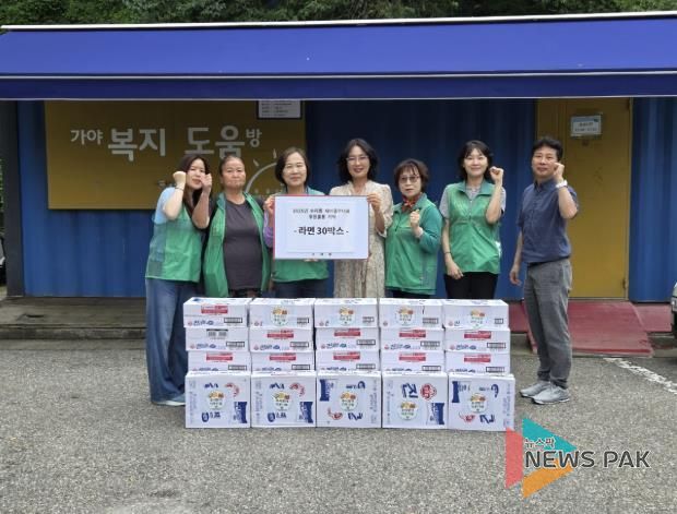 뉴스팍 배상미 기자 | 군포시 수리동 새마을부녀회는 지난 9월 23일 추석 명절을 앞두고 지역 내 어려운 이웃들을 돕기 위해 라면 30박스를 수리동 행정복지센터에 기탁했다.