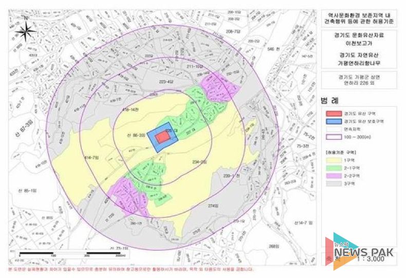 뉴스팍 배상미 기자 | 가평군은 경기도 심의를 거쳐 경기도 지정 유형유산인 상면 이천보고가 주변 지역의 건축행위 허용기준을 완화했다고 25일 밝혔다. 이로써 가평군은 올해 경기도 기념물 3건과 더불어 총 4건의 문화유산 주변 건축 규제를 완화했다.