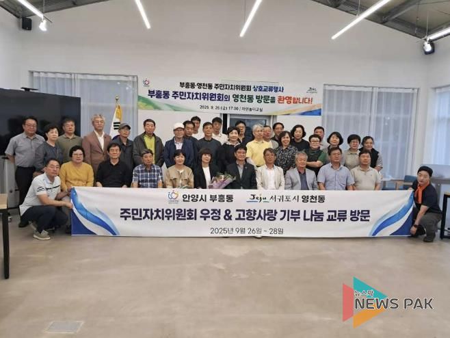 뉴스팍 배상미 기자 | 안양시 부흥동 주민자치위원회는 지난 26일부터 28일까지 3일간 제주특별자치도 서귀포시 영천동을 방문해 영천동 주민자치위원회와 친선결연 교류행사를 가졌다고 30일 밝혔다.
