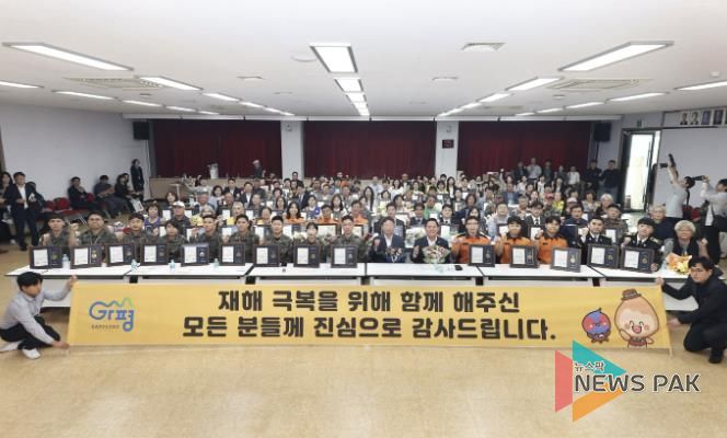 뉴스팍 배상미 기자 | 가평군은 9월 29일 군청 대회의실에서 지난 7월 집중호우 피해 복구 현장에서 헌신한 군민과 기관‧단체 등을 초청해 표창장을 수여했다. 이번 행사는 재난 현장에서 보여준 희생과 봉사에 깊이 감사하는 마음을 담아 마련됐다.
