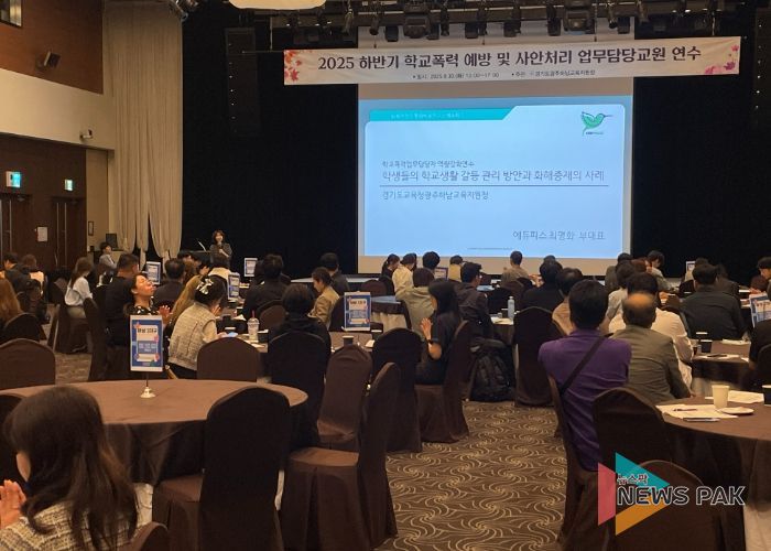 뉴스팍 류은정 기자 | 광주하남교육지원청은 2025년 9월 30일 관내 초중고, 특수학교 및 공민학교의 학교폭력 담당부장 및 책임교사 180여 명을 대상으로 학교폭력 예방 및 사안처리 연수를 실시했다.
