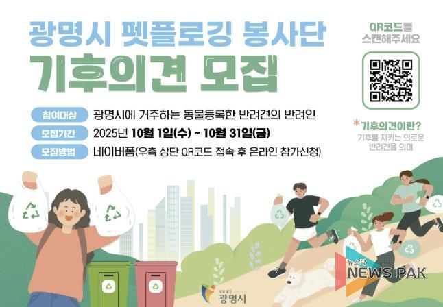한편, 광명시는 올해 1기를 시작으로 봉사단 규모를 매년 확대해 생활 속 기후실천 문화를 확산하고, 환경정화와 반려문화가 결합된 시민 참여형 모델을 정착시킬 계획이다.