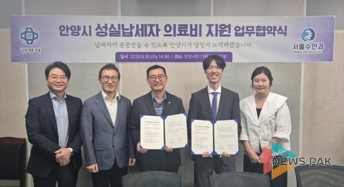 뉴스팍 배상미 기자 | 안양시는 지난달 30일 오후 2시30분 3층 기획경제실장실에서 관내 의원인 서울수안과와 ‘성실납세자 의료비 지원’ 업무협약을 체결했다고 1일 밝혔다.