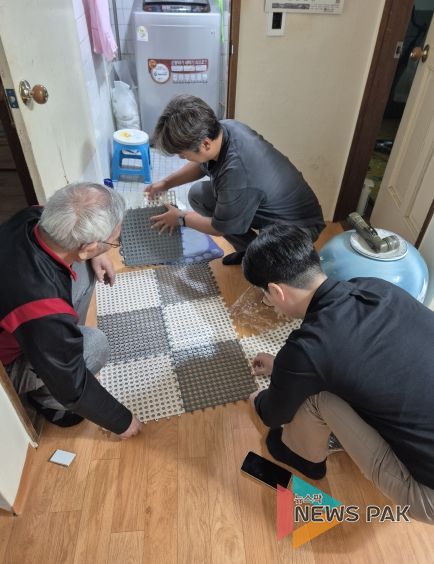 몸이 불편한 독거 노인의 가정 내 낙상사고 예방을 위하여 욕실에 미끄럼방지 패드를 설치하고, 명절을 맞이해 용인지역 농산물을 전달했다.