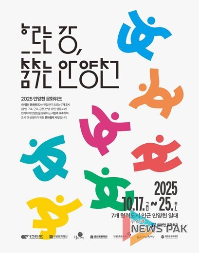 뉴스팍 배상미 기자 | (재)광명문화재단은 안양천을 중심으로 구로, 군포, 금천, 안양, 양천, 영등포 6개 문화재단과 연합하여 2025년 10월 17일부터 25일까지 〈안양천 문화위크〉를 개최한다. 안양천 명소화 사업(2021), 안양천 100리길 무무무(2023), 첫 안양천 문화위크(2024)에 이어 올해는 ‘흐르는 강, 춤추는 안양천’을 부제로 시민과 함께하는 다채로운 프로그램이 펼쳐진다.