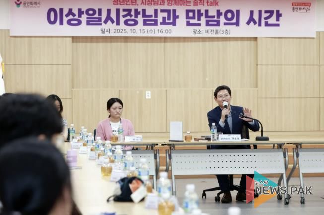 뉴스팍 배상미 기자 | 이상일 용인특례시장은 15일 오후 시청 비전홀에서 2025년 청년(공공)인턴들과 1시간 10분 간 소통의 시간을 가졌다.