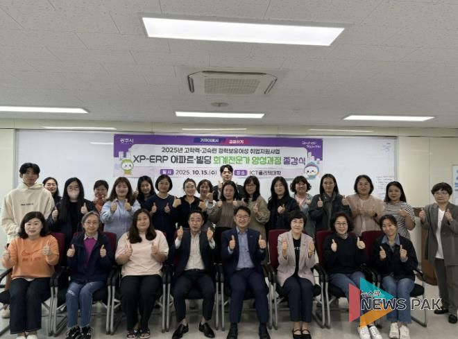 뉴스팍 이화형 기자 | 광주시는 지난 15일 ICT폴리텍대학에서 고학력·고숙련 경력 보유 여성의 취업 지원을 위해 추진한 ‘XP-ERP 아파트·빌딩 회계 전문가 양성 과정’ 종강식을 개최했다.