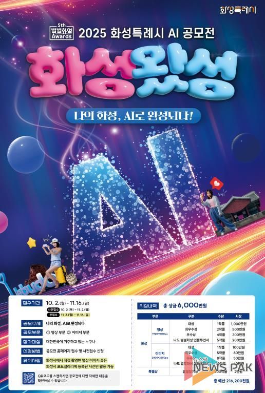 뉴스팍 류은정 기자 | 화성특례시가 오는 11월 2일까지 2025 화성특례시 AI 공모전 ‘화성왔성’ 사전접수를 진행한다.