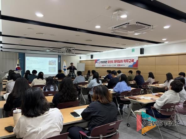 뉴스팍 이소율 기자 | 오산시는 지난 16일 오산시청 물향기실에서 본청 및 산하기관 발주 담당자 45명을 대상으로 ‘2025년 계약심사 직무교육’을 실시했다고 밝혔다.
