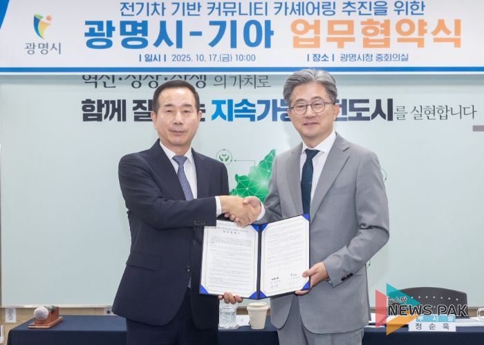 뉴스팍 배상미 기자 | 광명시가 기아와 손잡고 광명역세권에서 전기차 공유 서비스를 운영한다.