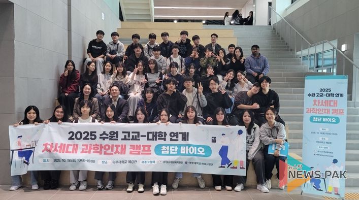뉴스팍 배상미 기자 | 경기도수원교육지원청은 18일 아주대학교 혜강관과 원천관에서 ‘2025 수원 고교-대학 연계 차세대 과학인재 캠프’를 운영했다.