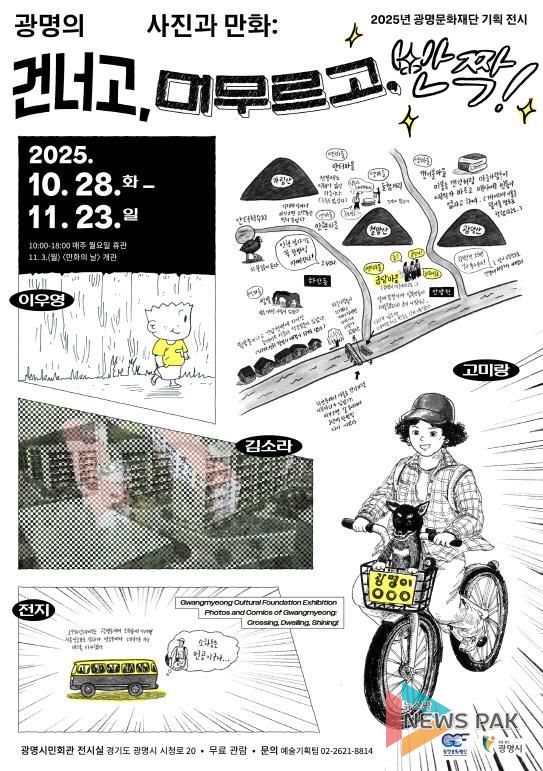 뉴스팍 배상미 기자 | (재)광명문화재단은 사진과 만화를 통해 광명의 역사와 현재를 기록하는 전시 '광명의 사진과 만화: 건너고, 머무르고, 반짝!'을 오는 10월 28일부터 11월 23일까지 광명시민회관 전시실에서 선보인다.