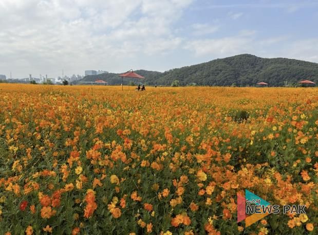 그 결과 노란빛의 황화코스모스가 공원 전역에 고르게 피어 호수와 산책로, 주변 경관이 조화를 이루는 가을철 경관단지가 조성됐다.