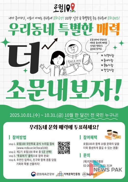 한편, ‘제2기 로컬100’은 오는 10월 31일까지 국민 투표를 받고 최종 심사를 거쳐 올해 말 전국 100대 지역문화매력지로 선정된 장소를 발표할 예정이다. 선정된 기관 및 공간에는 홍보 지원과 네트워크 연계, 콘텐츠 개발 등 다양한 후속 지원이 제공된다.