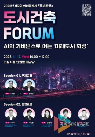 뉴스팍 류은정 기자 | 화성특례시는 오는 11월 19일 화성시청 대강당에서 ‘2025년 제2회 화성특례시 도시건축포럼 – 華城時代(화성시대)’를 개최한다고 밝혔다.