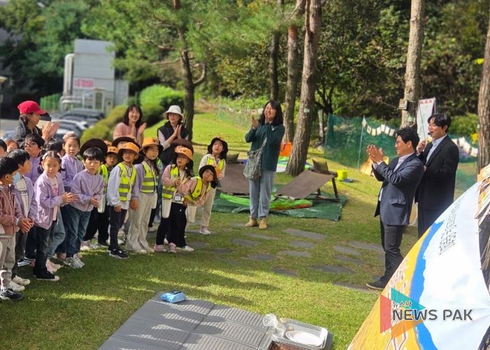 뉴스팍 류은정 기자 | 화성특례시가 어린이 대상 공공급식 식생활 교육인 ‘논 산책 프로그램’의 일환으로, 24일 동탄복합문화센터 야외공연장 체험 논에서 추수체험 행사 ‘가을 논 운동회’를 개최했다.