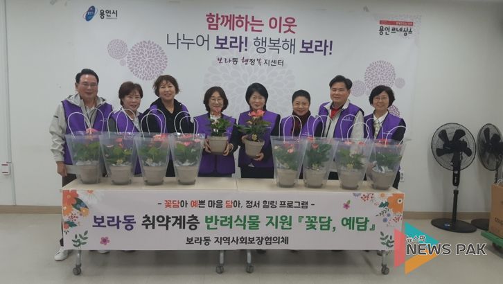 기흥구 보라동 지역사회보장협의체는 24일 취약계층 반려식물 지원사업 ‘꽃담아, 예쁜 마음 담아’를 진행했다.