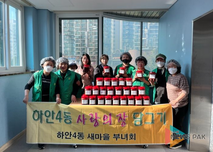 한편, 하안4동 새마을부녀회는 밑반찬 지원, 고추장 나눔, 김장김치 나눔 등 다양한 봉사활동으로 취약계층 지원과 이웃 사랑을 꾸준히 실천하고 있다.