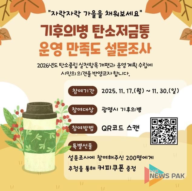 뉴스팍 배상미 기자 | 광명시가 오는 17일부터 30일까지 기후의병 탄소저금통의 업그레이드를 위한 시민 의견을 모은다.