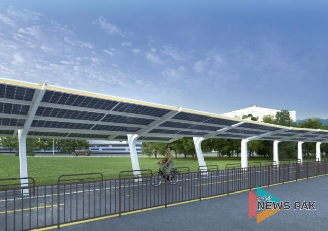 뉴스팍 배상미 기자 | 시흥시는 시화방조제 자전거길에 디자인ㆍ경관ㆍ시민 편의를 결합한 공공디자인 태양광 시설 설치에 착수한다. 이번 사업은 경기도 ‘시화호 RE100’ 및 ‘경기 햇빛 자전거길 1호’ 사업과 연계한 시흥시 대표 에너지전환 프로젝트로, 공사는 11월 24일부터 2026년 2월 28일까지 진행된다.