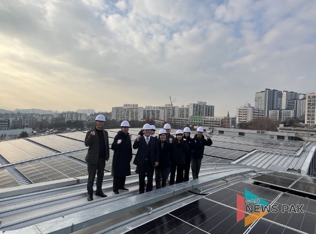뉴스팍 배상미 기자 | 경기도는 15일 수원월드컵경기장 스포츠센터 옥상에 설치된 태양광발전소를 방문해, 공공시설 유휴부지를 활용한 재생에너지 공급 확대 현황을 점검하고, 공공부문 RE100 달성을 위한 추진 상황을 공유했다. 이번 현장 방문에는 차성수 기후환경에너지국장을 비롯해 경기도수원월드컵경기장관리재단, 경기환경에너지진흥원 관계자들이 함께했다.
