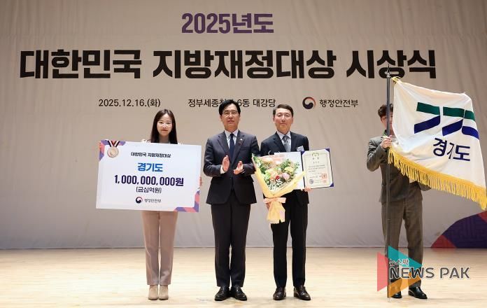 뉴스팍 배상미 기자 | 경기도가 행정안전부 주관 ‘제18회 대한민국 지방재정대상’에서 무기명예금증권 등 은닉성 채권을 끝까지 추적한 체납징수 성과로 대통령상과 시상금(재정 인센티브) 10억 원을 받았다. 작년에 이어 2년 연속 지방재정 최고상인 대통령상을 수상한 것은 전국 지자체 중 경기도가 유일하다.