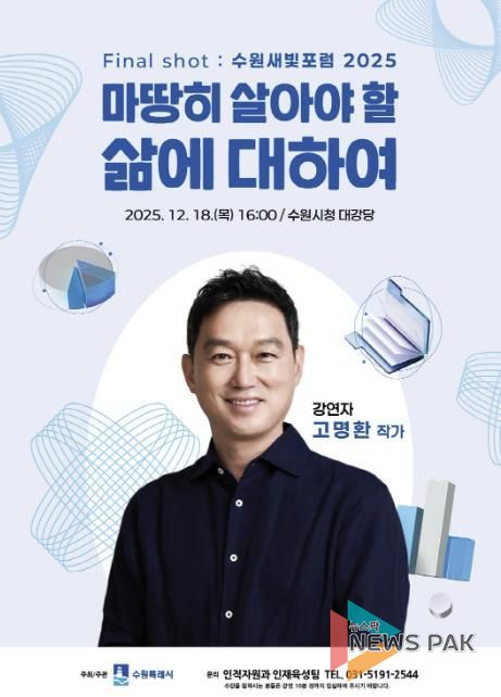 뉴스팍 배상미 기자 | 전직 코미디언인 고명환 작가가 12월 18일 오후 4시 시청 대강당에서 열리는 제174회 수원새빛포럼 강사로 나선다.