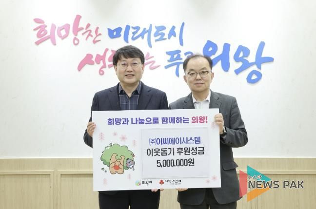 뉴스팍 배상미 기자 | 의왕시는 12월 16일 ㈜이씨에이시스템에서 지역사회 나눔 실천을 위한 성금 500만원을 기탁했다고 밝혔다.