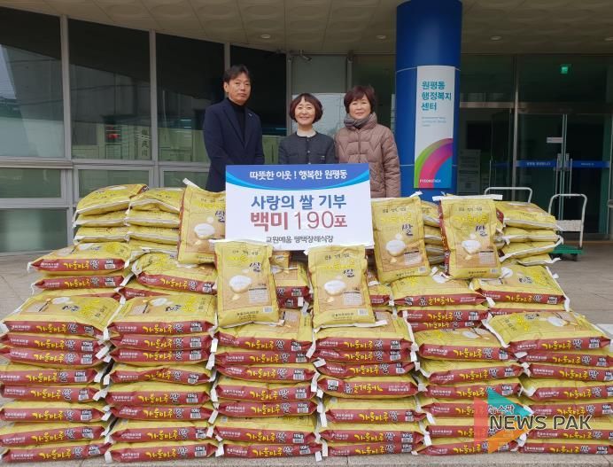 뉴스팍 이소율 기자 | 평택시 원평동 지역사회보장협의체는 지난 16일 교원예움 평택장례식장으로부터 지역 내 취약계층을 돕기 위한 백미 190포를 기부받아 나눔을 실천했다.