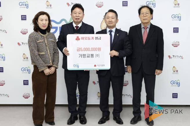 뉴스팍 배상미 기자 | 가평교통㈜는 17일 가평군청을 방문해 이웃돕기 성금 500만 원을 기탁했다.