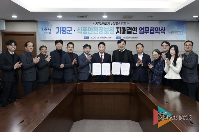 뉴스팍 배상미 기자 | 가평군이 식품안전정보원과 손잡고 지역경제 활성화와 지방소비 촉진을 위한 상생 협력에 나선다.