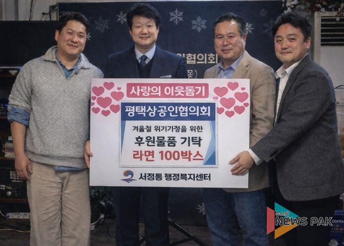 뉴스팍 이소율 기자 | 평택시 서정동 행정복지센터는 지난 18일 평택상공인협의회가 겨울철 복지 사각지대에 놓인 취약계층을 돕기 위한 라면 100박스를 기부했다고 밝혔다.