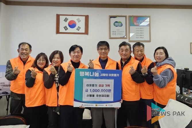 윤석용 신평동장은 “어려운 이웃을 위해 따뜻한 나눔을 실천하고 있는 주민자치회에 감사드린다”며, “기부된 성금은 도움이 필요한 가정에 소중히 전달될 수 있도록 하겠다”고 전했다.