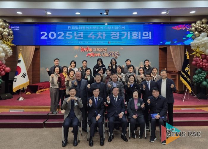 뉴스팍 배상미 기자 | 민주평화통일자문회의 의왕시협의회가 12월 19일 시청 대회의실에서 자문위원 등 45명이 참석한 가운데‘화해·협력의 남북관계 재정립을 위한 정책방향’을 주제로‘2025년 4차 정기회의’를 개최했다.