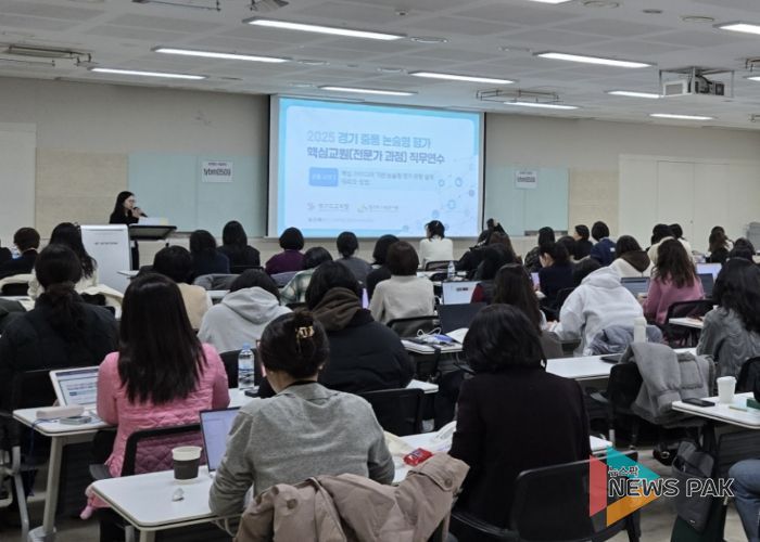 뉴스팍 배상미 기자 | 경기도교육연구원 경기평가관리센터가 2025년 12월 3일부터 12월 20일까지 온·오프라인 혼합형으로 운영한 ‘2025 경기 중등 논술형 평가 핵심교원(전문가 과정) 직무연수’를 총 20시간 과정으로 마무리했다. 연수에는 중등 교사 77명이 참여했으며, 실습 중심 프로그램으로 구성돼 참가자들의 만족도가 높게 나타났다.